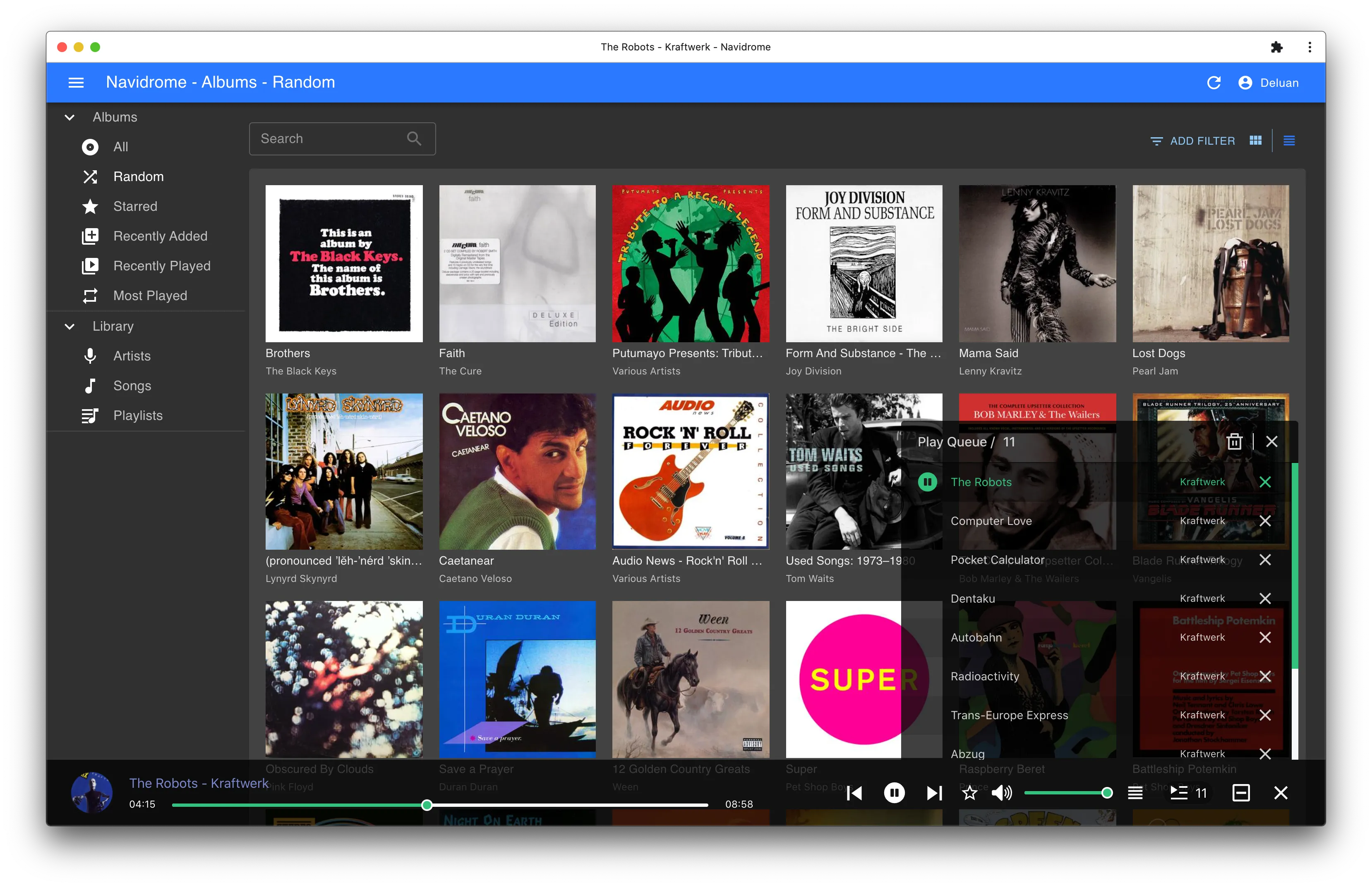 Navidrome features a modern, responsive Web UI built with Material UI and React. Beyond the built-in web interface, Navidrome is compatible with a wide ecosystem of Subsonic and OpenSubsonic clients across all major platforms, including mobile apps for iOS and Android, desktop applications for Windows, macOS, and Linux, as well as specialized clients for Android TV, CarPlay, and Android Auto.
